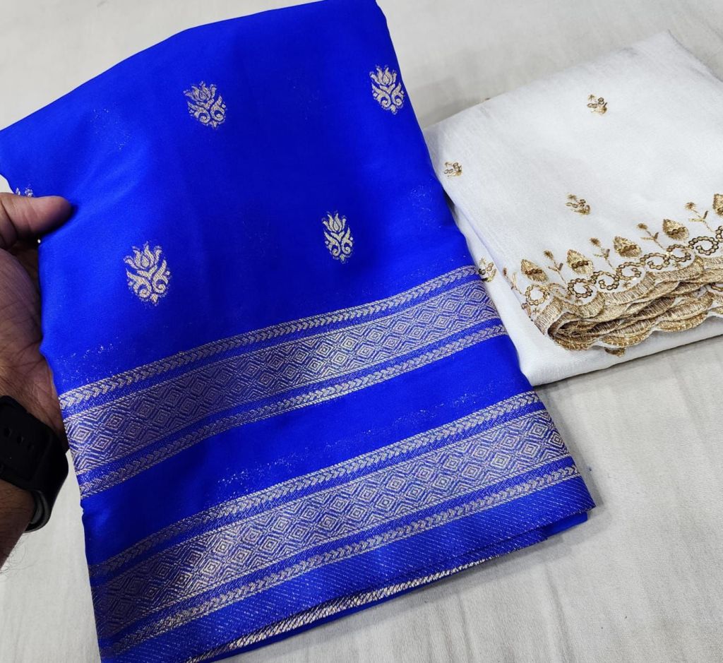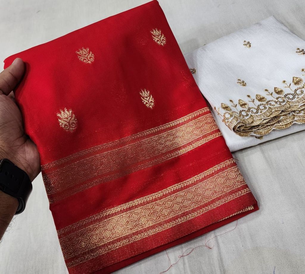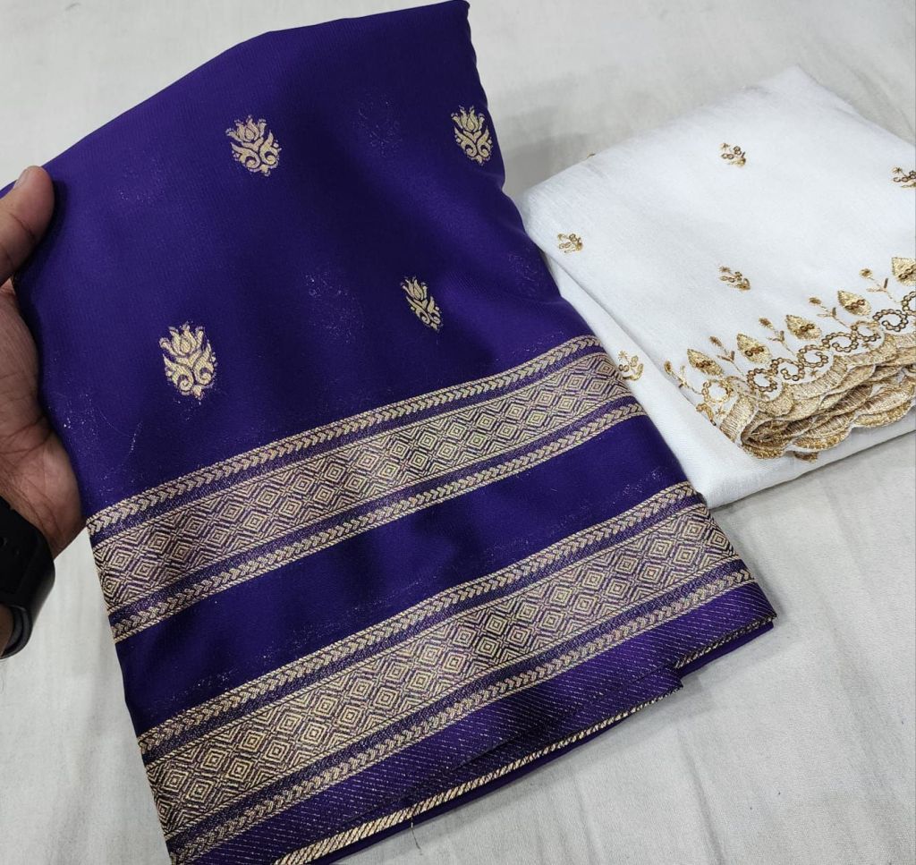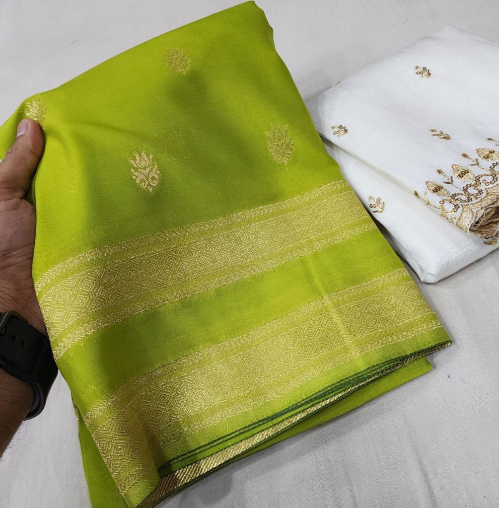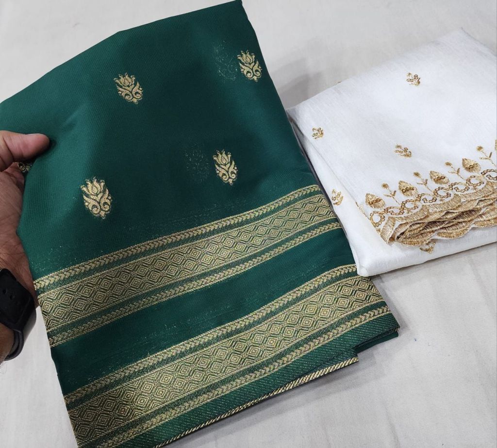 Premium Mysore crepe silk bentex border fancy blouse! Rich pallu!